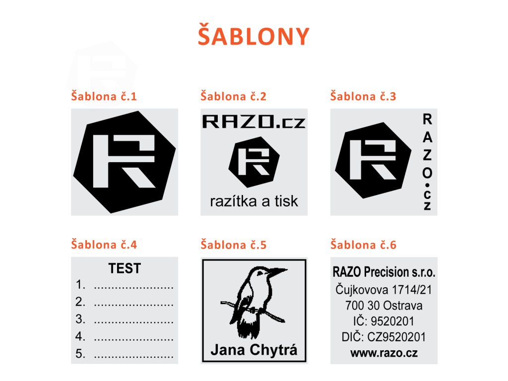 - Kvalitativně a velikostně podobná razítka mají název Trodat Pocket Printy 9425 a COLOP Stamp Mouse R 30