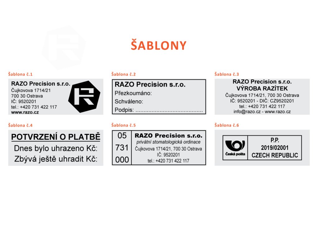 - Tato razítka nezávisle testoval Strojírenský Zkušební Ústav, s. p. Razítka byla plně funkční i po 2 000 000 otiscích.